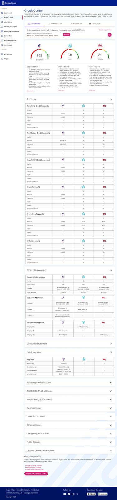 Credit Reports: Enhanced layouts allowed users to view detailed reports from each bureau in an intuitive format, breaking down complex information into digestible sections.