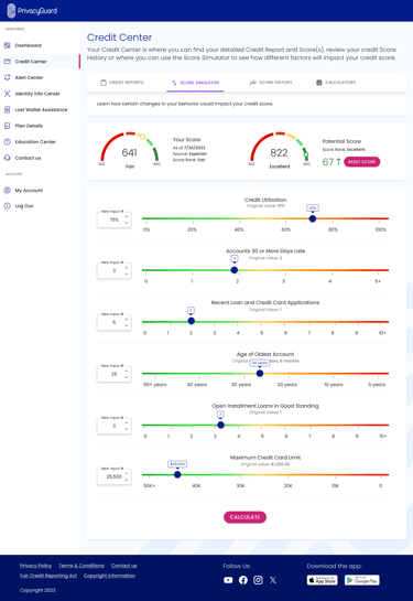 Credit Rating Tools: Interactive calculators were added to help users understand the factors influencing their scores and simulate how actions might impact their ratings.